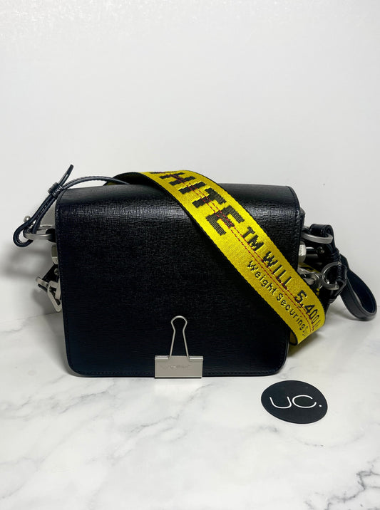 Off-White Black Leather Binder Clip Crossbody Bag with Removable Strap