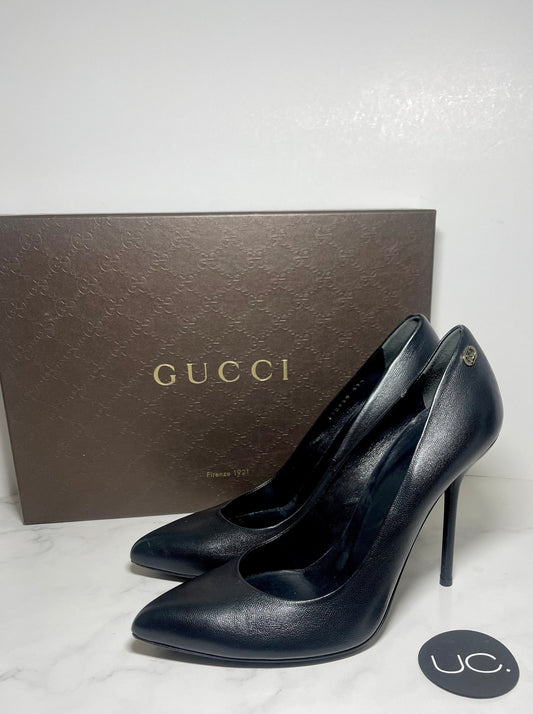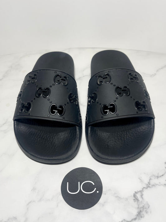 Gucci Rubber Pursuit G Slides, Black, Size 39