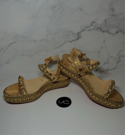 Christian Louboutin Pyraclou Sandals. Size 37, Gold.