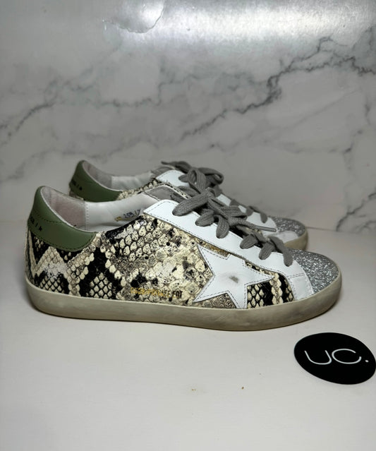 Golden Goose Super-Star Sneakers, Size 37, Silver/Snakeskin