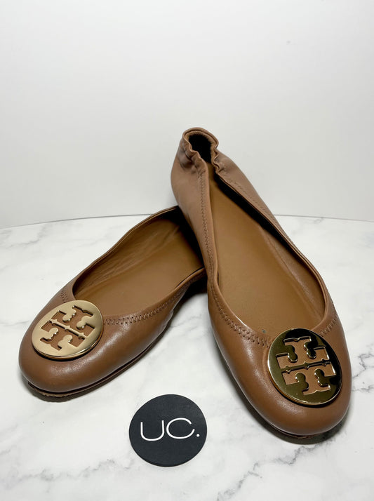 Tory Burch Minnie Travel Ballet Flat, Royal Tan/Gold, Size 9.5