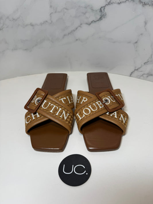 Christian Louboutin Crossimule Sandals, Brown, Size 37.5