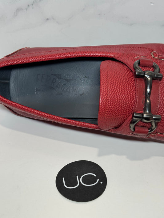 Ferragamo Parigi Loafers. Red. Pebble Calf Leather. Size 9.5.