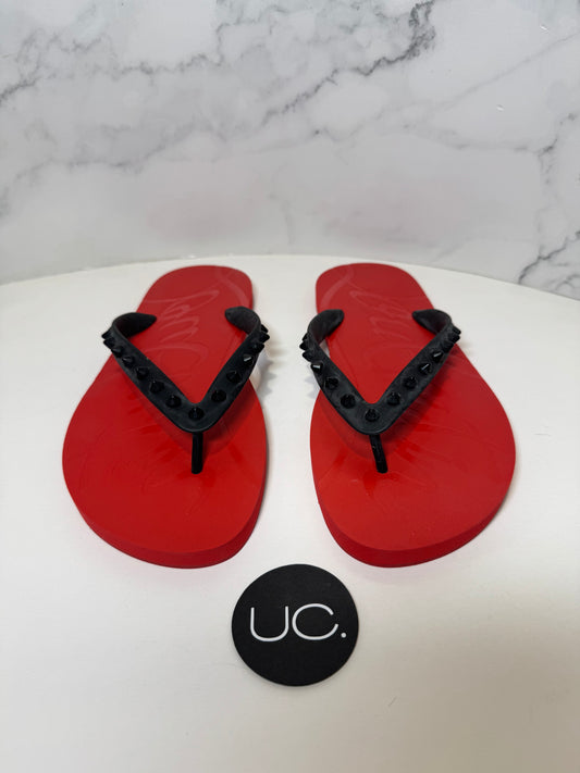 Christian Louboutin Loubi Flip Flops, Size 37, Red/Black
